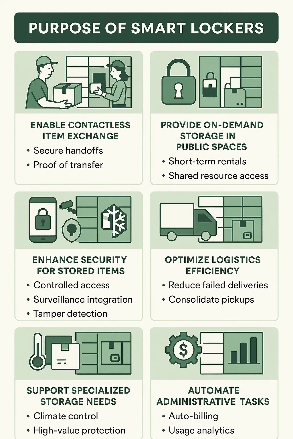Acceso a recursos compartidos: sirva como puntos de recogida/caída neutrales para herramientas compartidas, puntos de recogida/caída para herramientas, equipos o documentos compartidos en oficinas o complejos residenciales.